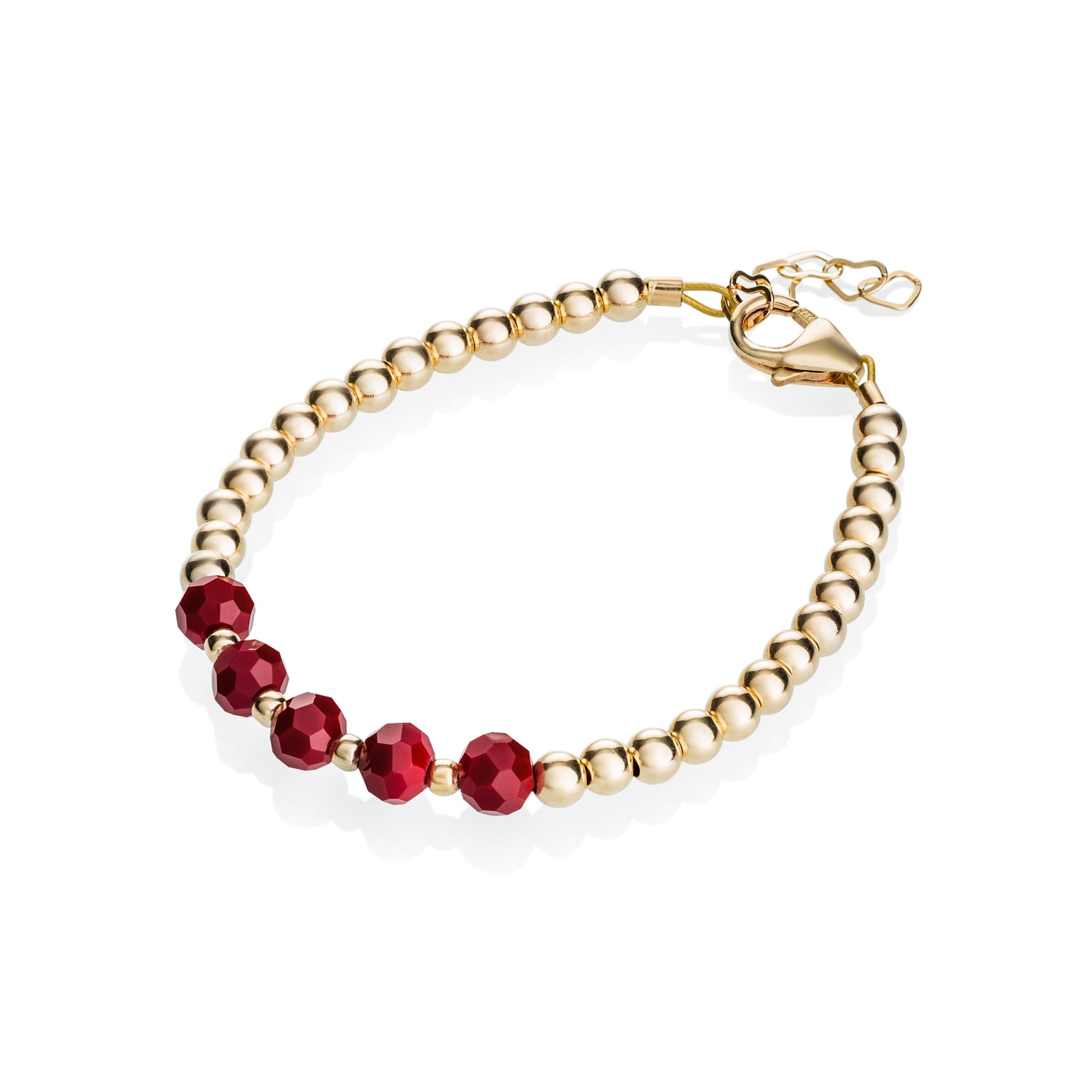 Gold filled maroon crystal and gold beaded adjustable bracelet